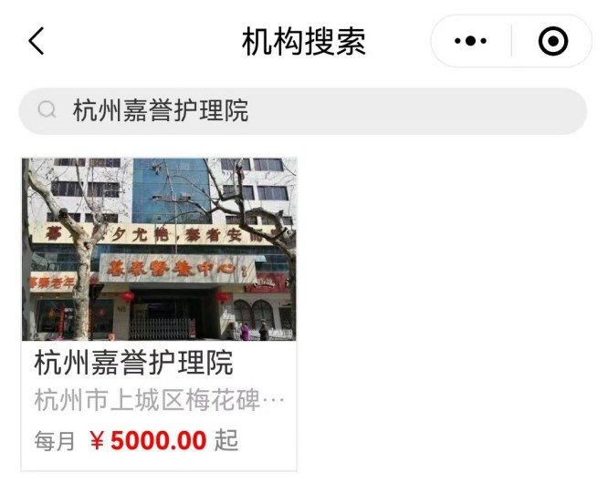 输入需查询预约机构名称:“杭州嘉誉护理院”