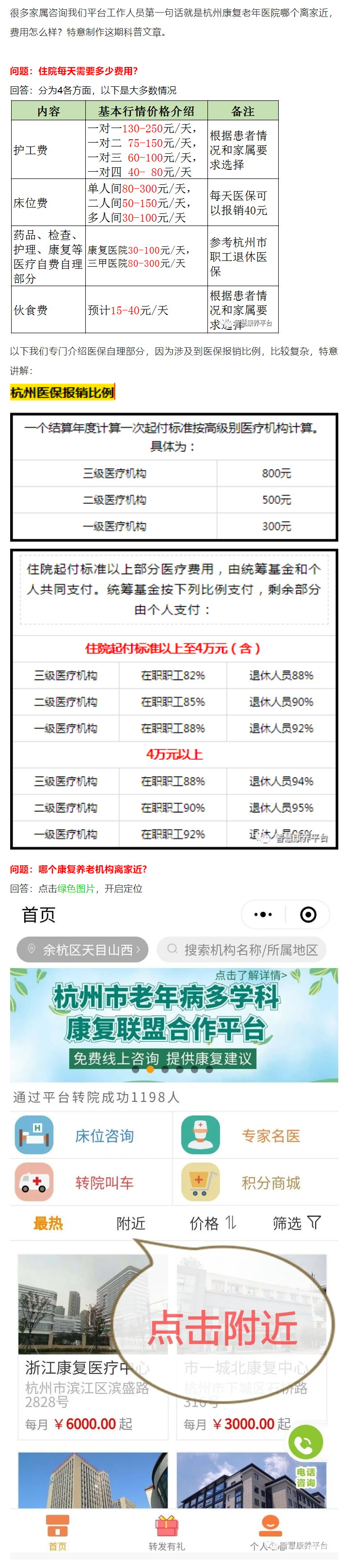 杭州康复医院、老年病医院住院每天需要多少钱?哪个离家最近