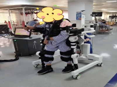 经过1个多月的精心治疗与锻炼后,蒋先生的右侧肢体功能有了明显的进步,右上肢已能自主抬举,右手活动能力大幅提升,并在辅助下完成了短距离行走。随后,科室使用先进的下肢机器人辅助训练项目,帮助提升蒋先生下肢功能恢复的速度。