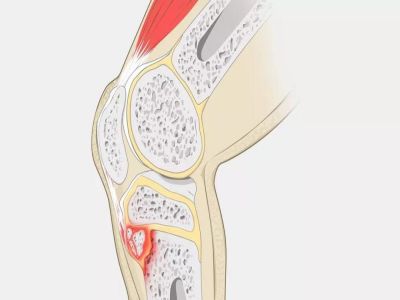 在我们手所能触摸到的膝盖的那块“圆骨头”(髌骨)之上,是人体最大的肌肉群,股四头肌的肌腱所在,股四头肌腱像一条宽胶带一样黏在髌骨上,股四头肌收缩时使膝伸直,人类就是利用这些肌肉行走和奔跑的。所以,当膝关节上方出现疼痛时,很有可能是股四头肌腱出现了问题,比如严重的外伤、运动不当、运动场地温度过低湿度过大等原因引起。一般股四头肌腱损伤的患者在跑步启动加速时大腿伸直那一刻会感觉到大腿突然疼痛,轻度的仅仅是局部有血肿或轻度的肿胀,按压髌骨上端会有疼痛,抬小腿困难,严重的会导致膝关节弯曲困难,疼痛,尤其是在伸小腿屈大腿时会疼痛特别明显。